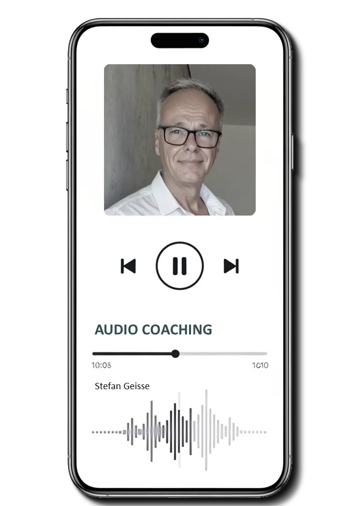 Persönliches Krisen-Briefing für unterwegs: Während du im Auto sitzt oder spazieren gehst, bekommst du auf menschlicher Ebene gespiegelt, wo du stehst – und wie du als starker Partner reagierst, statt emotional getrieben zu handeln.